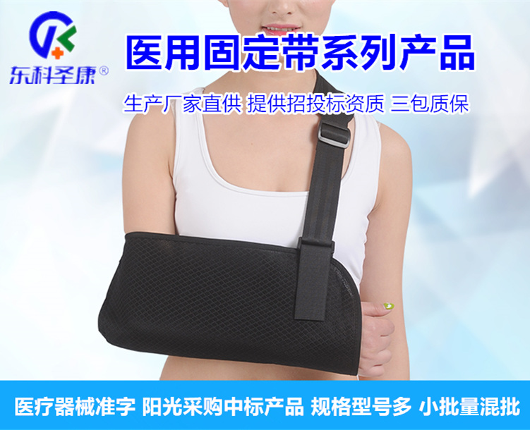 东科圣康品牌医用外固定支具、医用固定带系列产品主要由铝合金板、塑料板、人造革、铆钉等材料加工制成,属于正规医疗器械准字号产品,规格型号涉及膝关节支具、下肢医用外固定支具、头颈胸支具、肋骨固定带、多头胸带、足踝固定带等300余种,可适用于骨伤科、外科、急诊科、整形矫形科、康复理疗科、120现场急救等科室针对患者身体各个患部的急救固定、骨折和扭伤、韧带拉伤等外固定治疗与康复,产品松紧可调,通用性较好,可重复使用,操作简单方便,产品用料规范符合相关医疗器械标准与要求,有正规医疗器械批准文号和医疗器械生产资质,同时是全国多个地区政府主办公立医疗机构医用耗材集中采购、阳光采购项目中标产品。